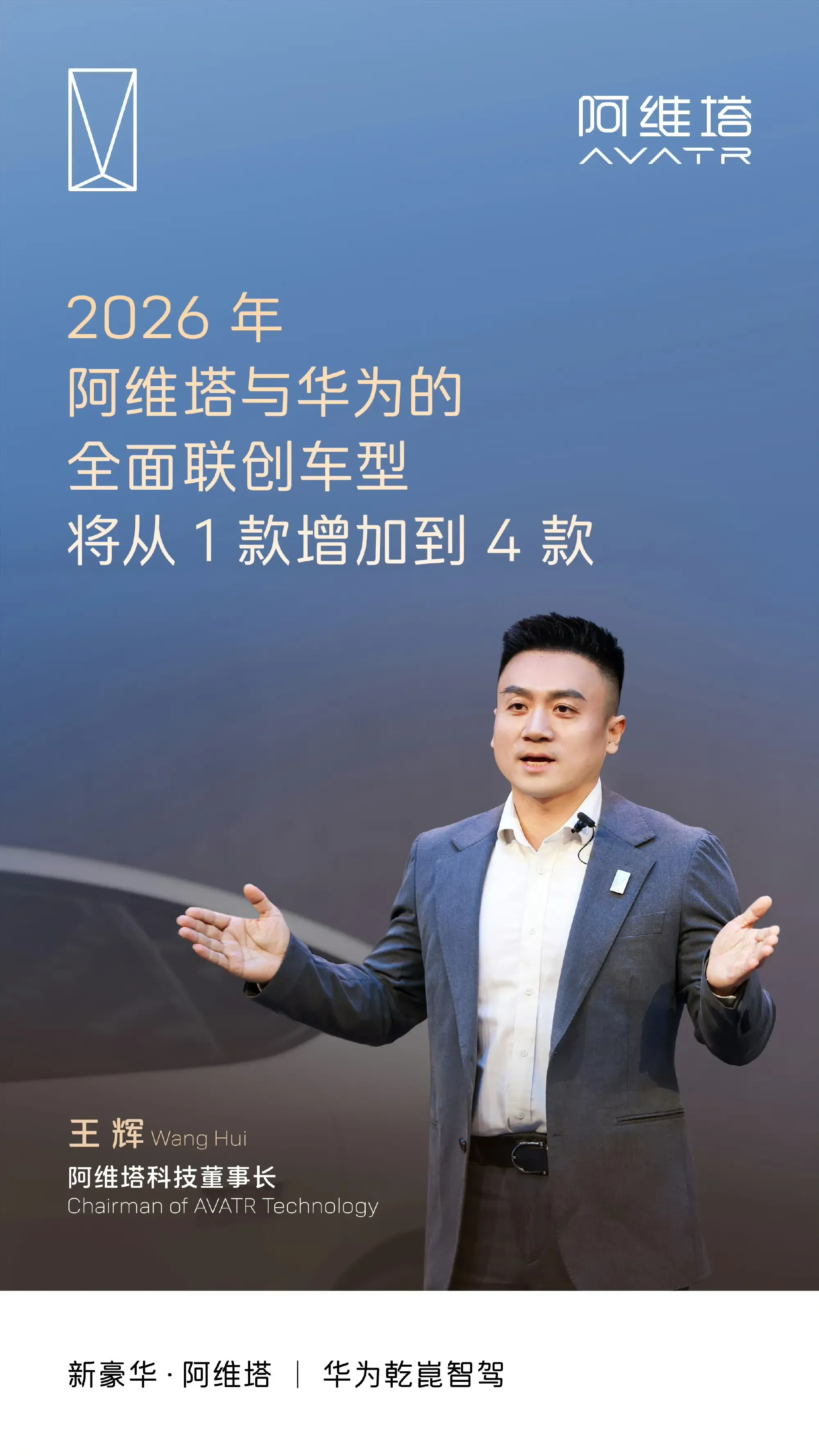 Chairman Wang Hui announced that Avatr plans to launch four jointly developed models with Huawei in 2026, expanding from one model this year. The company describes itself as Huawei’s longest-running and most broadly integrated automotive partner.
