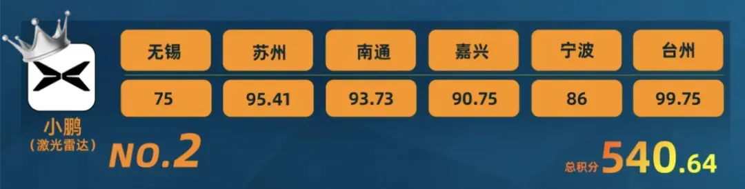 XPeng’s LiDAR variant held second with 540.64 cumulative points and a 90.11 single-round average. Modest performances in Wuxi (75) and Ningbo (86) dragged its total down after losing Nanjing (106.88) and Changzhou (106.42) from the scoring window. Its Taizhou consistency—101.5 in prelims, 98 in finals—proved sufficient to maintain position.