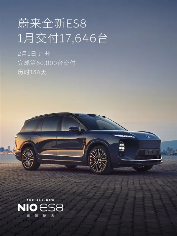 NIO ES8 accounted for 60% of January deliveries; 96.1% growth year-on-year