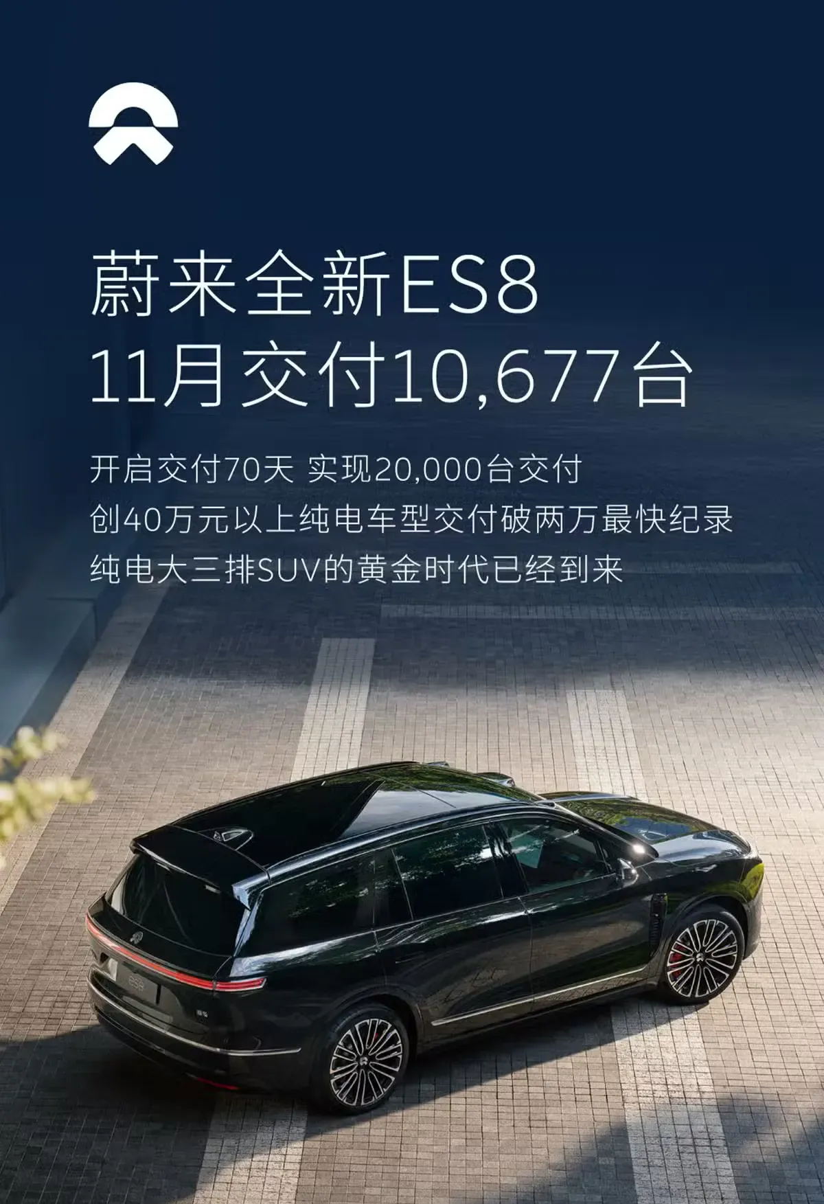 NIO targets 40,000 ES8 deliveries for 2025, with roughly 20,000 units still required in December to meet their initial goal of 40,000 ES8.
