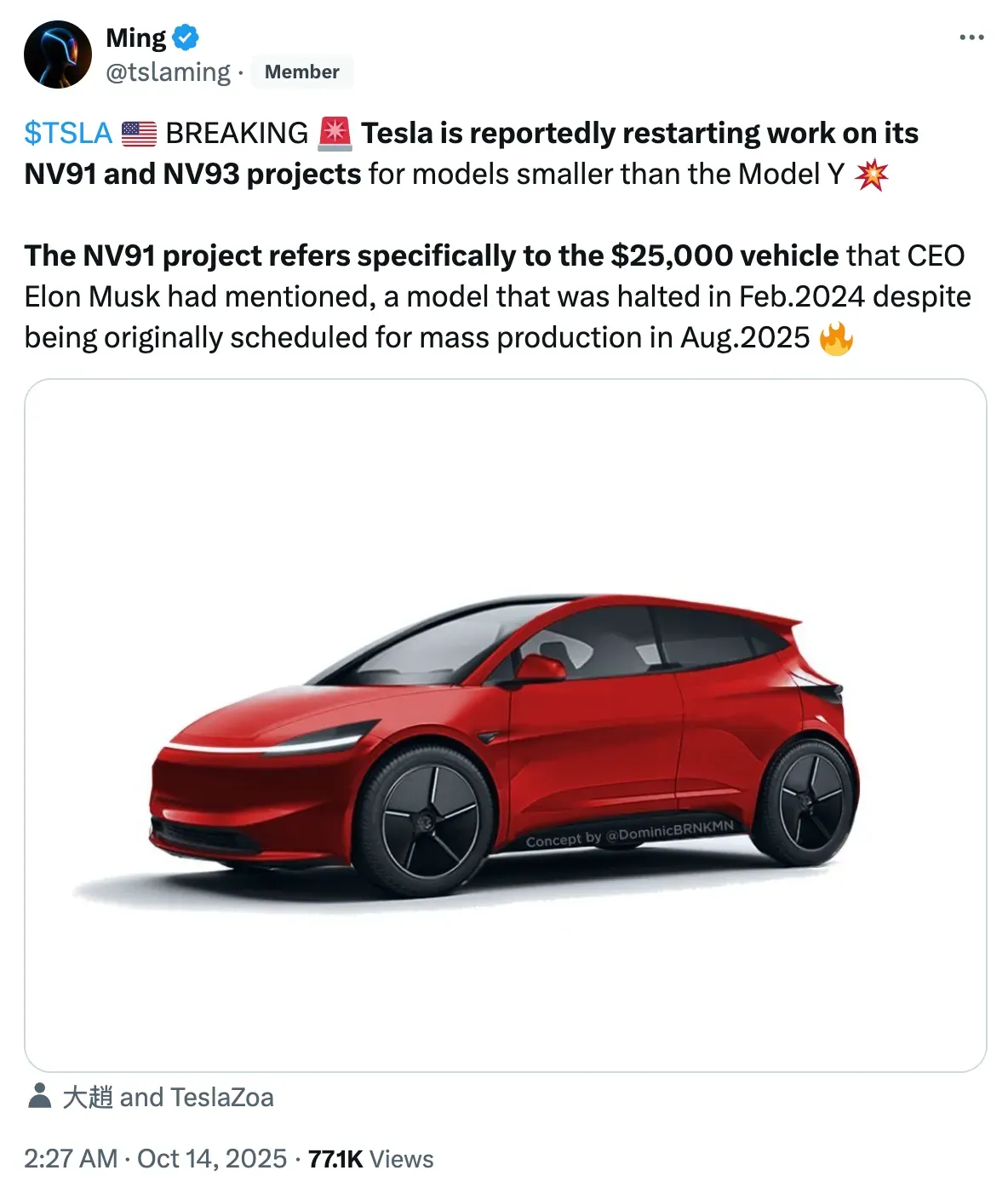 In parallel, Tesla is reportedly considering reviving its NV91 and NV93 small-vehicle projects—compact models intended to sit below the Model Y.