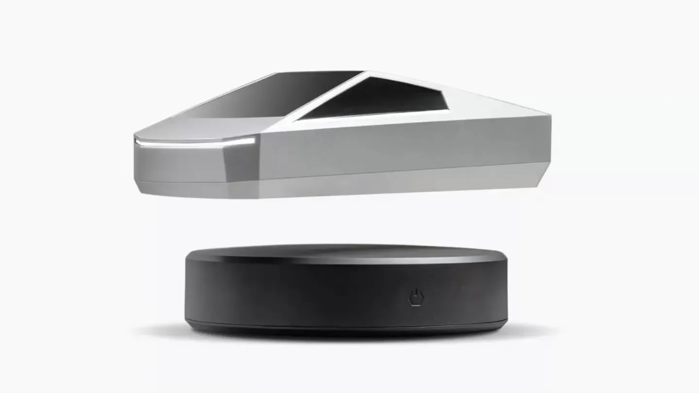 The Cybertruck replica’s body is coated in silver paint to match the finish of the full-sized electric pickup. The package includes one model vehicle, one magnetic-levitation base equipped with a USB-C charging cable, and a 12 V AC adapter.