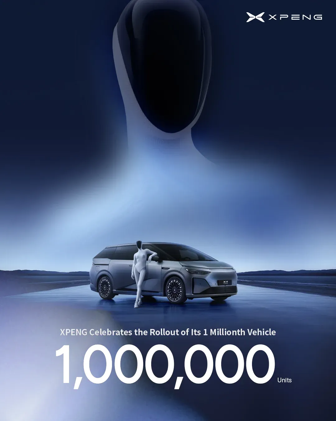 XPeng hits 1 million vehicles produced; last 500,000 units took just 14 months