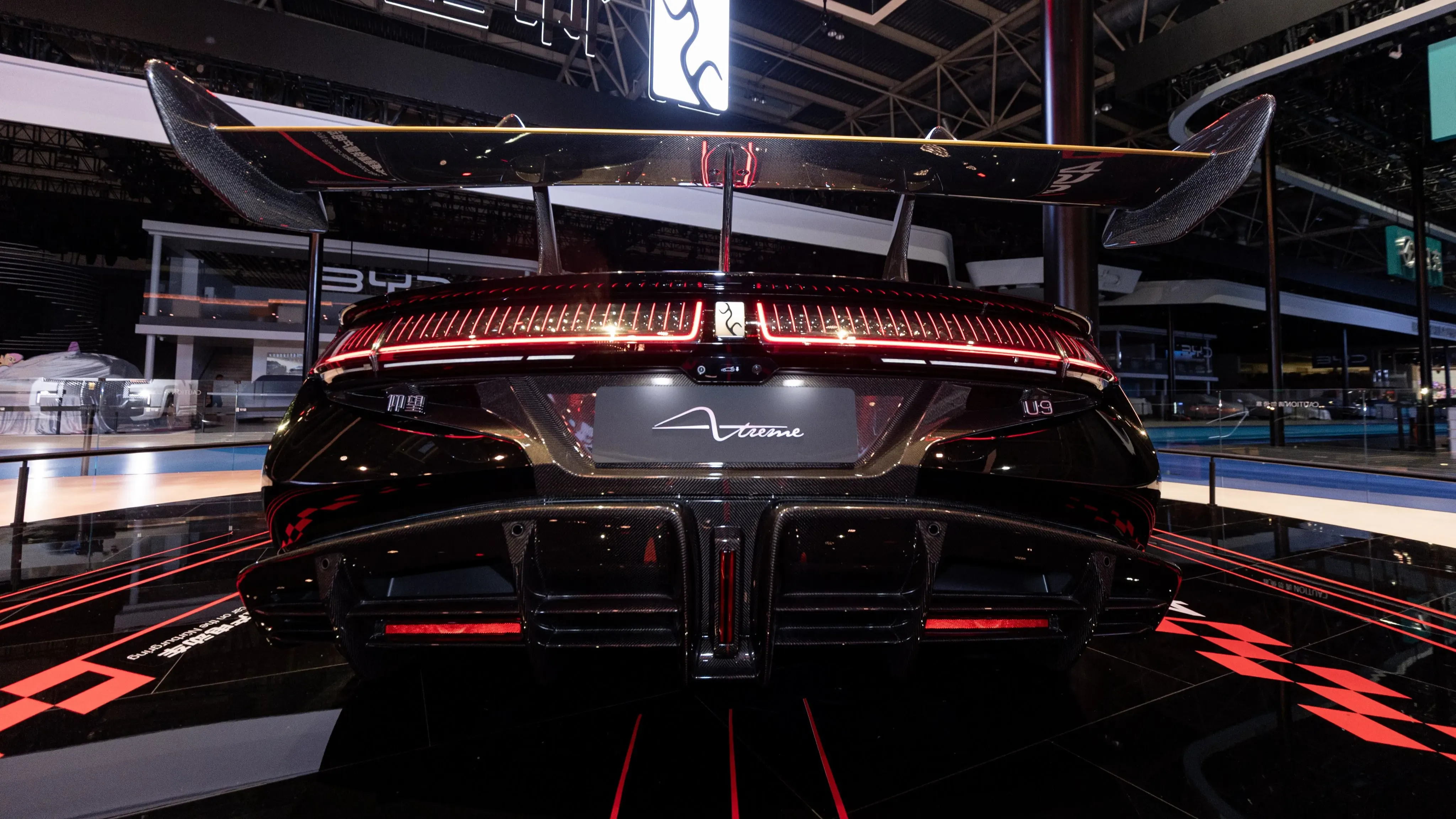 The production U9 Xtreme appeared at the Beijing show in a black-and-gold livery with a prominent rear wing, debuting alongside two other Yangwang premieres: the four-seat U8L SUV and a new U7 sedan.